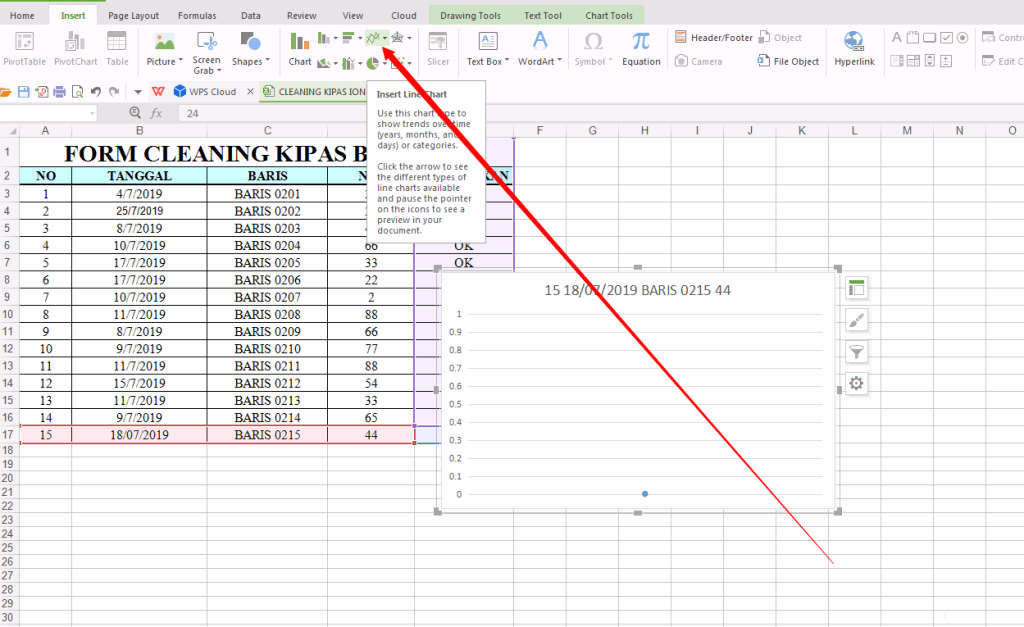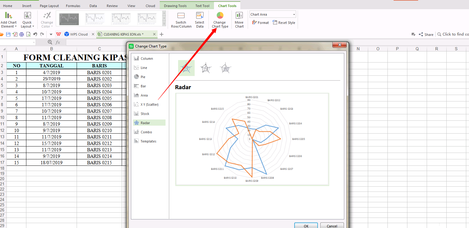 bentuk diagram garis ke bentuk diagram lainnya , kalian bisa klik Chart Tools
